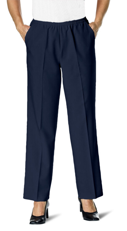Åshilds populära modell med resårmidja och fickor. Innerbenslängden följer storleken ca 75 eller 78 cm. 96% polyester, 4% elastan. Fintvätt 30. Färg marin.
