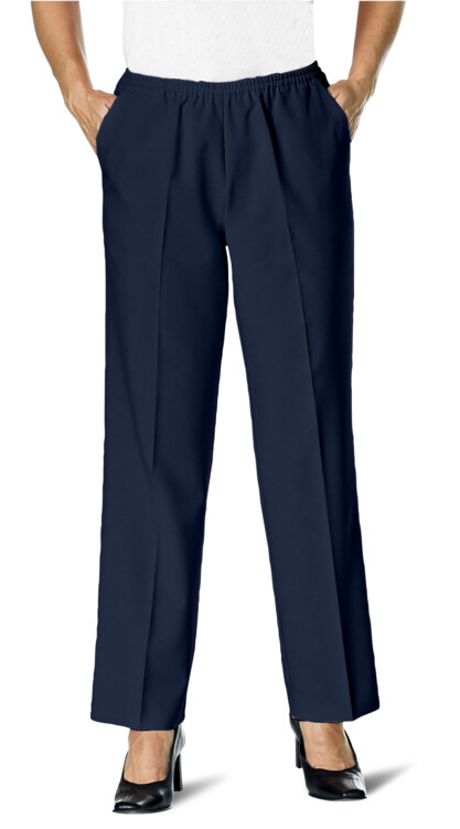 Åshilds populära modell med resårmidja och fickor. Innerbenslängden följer storleken ca 75 eller 78 cm. 96% polyester, 4% elastan. Fintvätt 30. Färg marin.