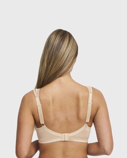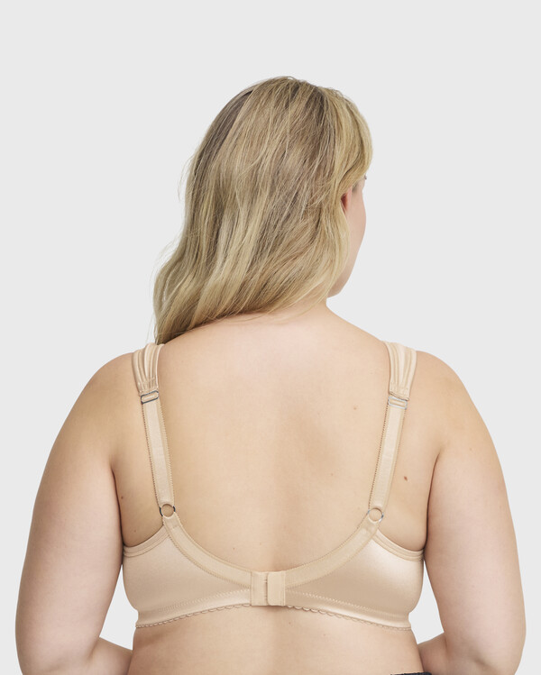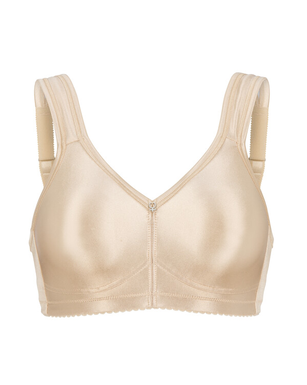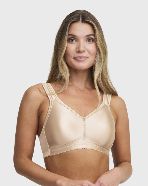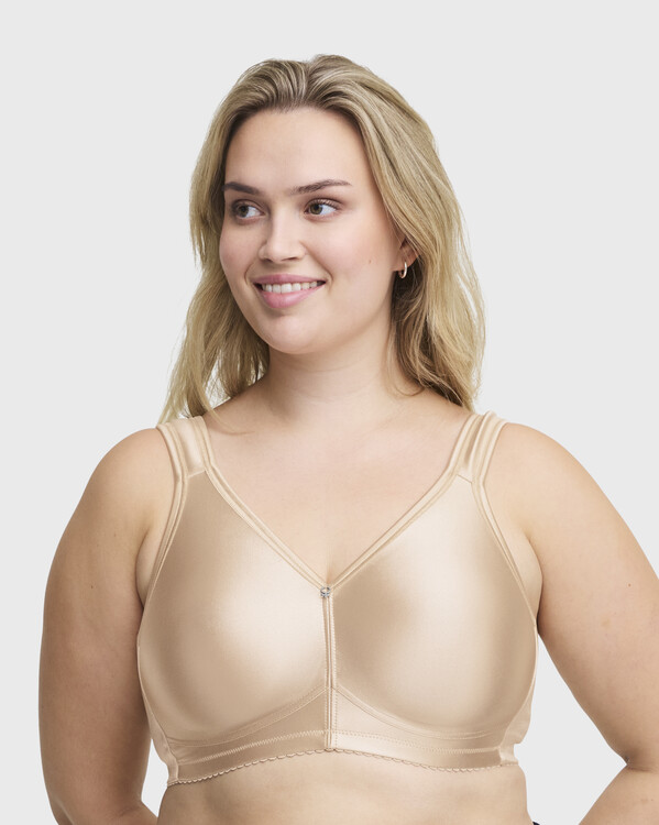 Shine BH utan bygel är en mjuk och följsam modell som känns som en andra hud. De formpressade kuporna skapar en naturlig form och gör att kläderna faller snyggt över bysten. Vid armhålan finns mjuka kanter som ger stöd utan att skava, och den breda resåren med mjuk insida gör att BH:n sitter bekvämt hela dagen. Vadderade, justerbara axelband avlastar axlarna och ger optimal passform och stöd – oavsett kroppstyp. En stilfull och bekväm BH som knappt märks på kroppen, men som gör stor skillnad under dina kläder. 90% polyamide 10% elastane. Tvätt 40°.