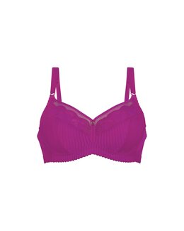 har breda, vadderade axelband som kan justeras för bästa komfort. Den nedre delen av kuporna och sidorna är täckta i ett randigt mikrofibertyg.