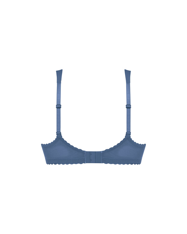Sita från Rosa Faia är elegant dekorerad med blommönstrad spets på den övre delen av kuporna. Spetsen är fäst på transparent tyll, vilket ger behån ett lättare och mer delikat utseende. Behån