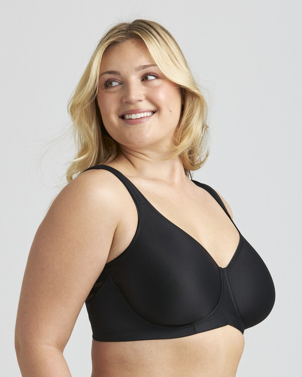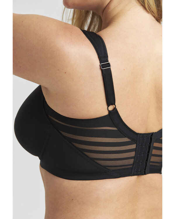 Den unika Ergo Front™-designen med upphöjd nederkant framtill ger extra komfort, särskilt när du sitter ner. De breda, vadderade och justerbara axelbanden avlastar axlarna och motverkar skav. BH:n har en bred u-formad rygg med klassisk hak- och hyskknäppning. 70% polyamid, 17% polyester, 13% elastan. Handtvätt.