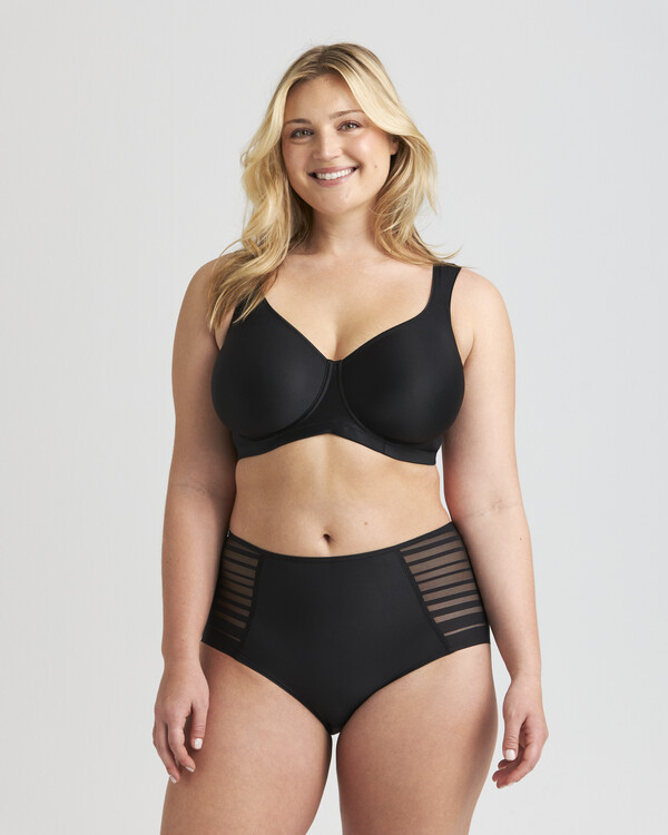 Bygel-bh i stilren design med genombruten powermesh i randigt mönster. De formpressade kuporna ger bysten en slät siluet...