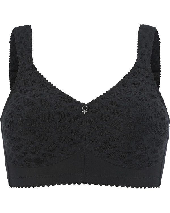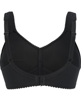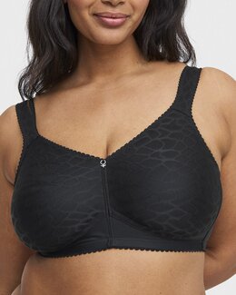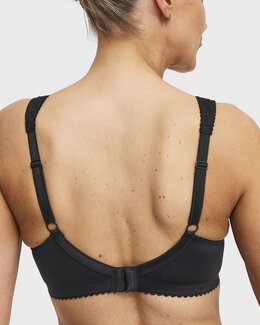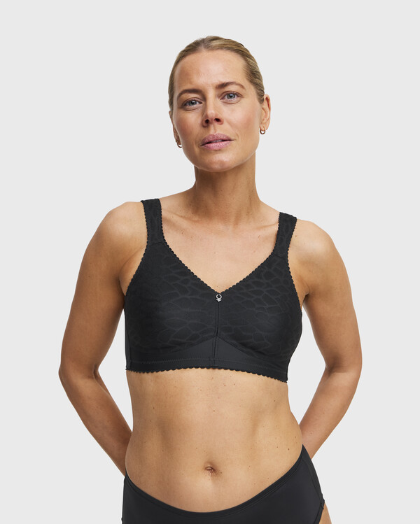 Rita Delight – en mjuk och formande bh utan bygel som ger både stöd och en jämn siluett. De formpressade kuporna och det dubbla materialet framtill skapar en naturlig form, medan de breda, vadderade axelbanden avlastar och gör behån extra bekväm att bära hela dagen. Mjuka kanter och ett vackert spetsmaterial ger en perfekt kombination av komfort och elegans.