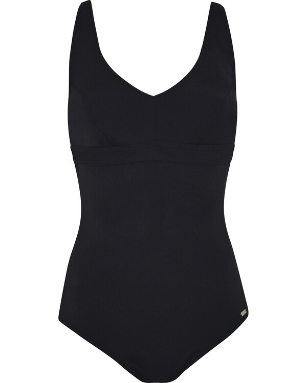 Klorresistent baddräkt från Abecita med foder för bysten. Lågt skuren i benkanterna vilket gör att baddräkten sitter bra vid aktivitet. Reglerbara axelband bak. Carvico Darwin är helt klorresistent material och är UV-skyddande (UPF+50) samt snabbtorkande. Kupa för protes . Handtvätt. Färg svart.
