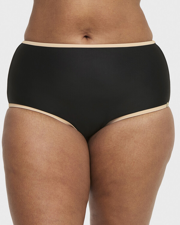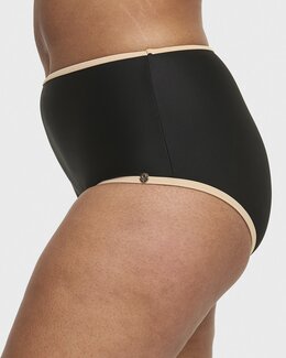 Portofino Maxi Brief kombinerar tryggt stöd med tidlös elegans. Detta klassiska bikinitrosmodell med hög midja och extra höjd framtill ger ökad stabilitet och komfort. Framsidan är fodrad med powernet som skapar en lätt formande effekt och en smidig siluett. De mjuka resårkanterna runt benen ser till att trosan sitter bekvämt hela dagen. Tillverkad i återvunnet material som står emot klor, solkräm och oljor – för badkläder som håller längre.