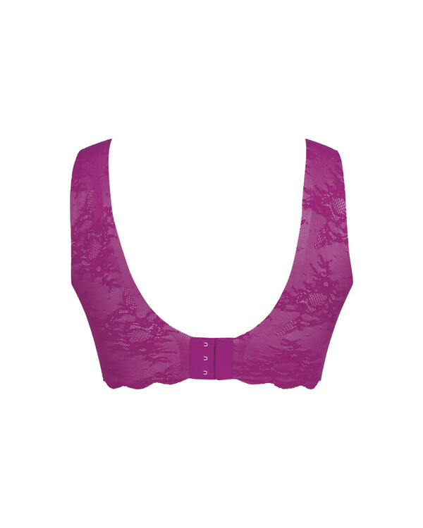 Den här mjuka, sömlösa braletten utan bygel kombinerar en romantisk spetslook med hög komfort i blommig spets. De formpressade kuporna med uttagbar vaddering ger en naturlig, rund form samtidigt som de låter huden andas.